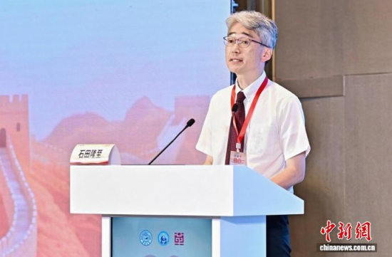 8月23日,吉林長春,日本明治學院大學國際和平研究所客座研究員石田隆至在紀念中國人民抗日戰(zhàn)爭暨世界反法西斯戰(zhàn)爭勝利80周年與東北抗聯(lián)研究國際學術研討會上分享研究成果。(吉林大學國家革命文物協(xié)同研究中心供圖)