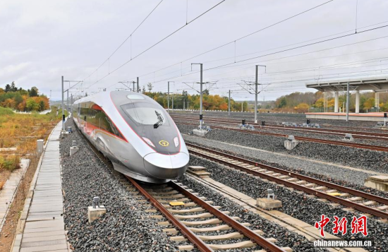 9月28日,G8166次列車從長(zhǎng)白山站始發(fā),駛向終點(diǎn)站沈陽(yáng)北站,沈白高鐵正式開通運(yùn)營(yíng),結(jié)束了吉林省通化、白山兩市不通高鐵的歷史,北京朝陽(yáng)站、沈陽(yáng)北站至長(zhǎng)白山站的最短旅行時(shí)間分別為4小時(shí)33分、1小時(shí)53分。作為中國(guó)東北高鐵網(wǎng)重要組成部分,該線路對(duì)暢通區(qū)域經(jīng)濟(jì)循環(huán)、促進(jìn)沿線旅游資源開發(fā)等具有重要作用。中新社記者 張瑤 攝