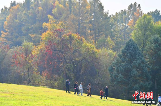 10月14日,隨著氣溫降低,長(zhǎng)春秋色漸濃,在凈月潭國(guó)家森林公園,大量市民前來(lái)賞秋。中新社記者 張瑤 攝