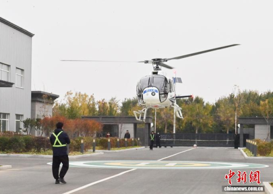 10月15日,吉林長春,急救人員在進行直升機航空緊急醫(yī)學(xué)救援演練。當(dāng)天,中國國家緊急醫(yī)學(xué)救援基地(吉林)立體轉(zhuǎn)運中心移動醫(yī)院正式交付。該移動醫(yī)院由吉林大學(xué)中日聯(lián)誼醫(yī)院承建,配備通信指揮車、移動CT車、手術(shù)車等14類15臺應(yīng)急車輛及43組帳篷,設(shè)200張床位,日均接診能力達800-1000人次。中新社記者 張瑤 攝