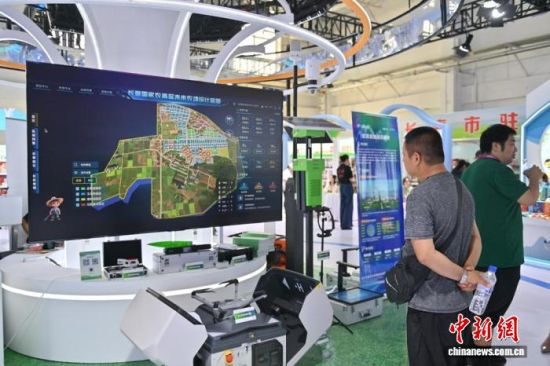 參觀者在參觀長(zhǎng)春國(guó)家農(nóng)高區(qū)未來農(nóng)場(chǎng)設(shè)計(jì)藍(lán)圖!埇 攝